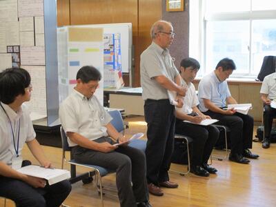 立山町教育センター所長である杉田孝志教育長から開会のごあいさつをいただき、続いて石原隆審査委員長から審査のポイントについてご説明いただきました。
