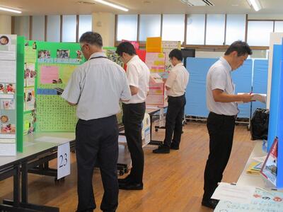 第2次審査では、立山区域小中学校から選出された教員10名が審査員を務め、展示作品一つ一つに目を通し、子供たちの疑問や解決のための手立て、調査や実験・観察を踏まえた考察等、課題解決や思考の流れを追いながら、意見交換に時間をかけました。