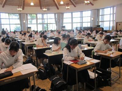 昨年度に引き続き、今年度も100名を超える参加希望者があり、会場の立山町元気交流ステーションには、学習道具を携えて、たくさんの生徒が集まりました。
