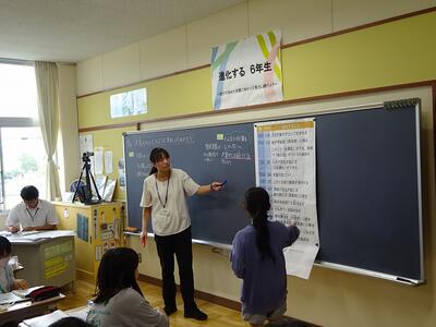 6年生で滝脇裕哉教諭による算数科「分数で割る計算を考えよう」の授業が公開されました。