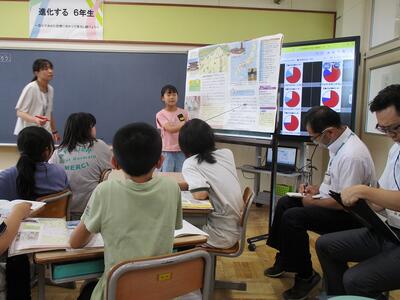 たくさんの参観者に囲まれた子供たちでしたが、友達の意見に耳を傾け、根拠を示しながら、元気に考えを述べ合っていました。そして、見通しをもって主体的に学習し、伝え合おう、分かり合おうとする姿がありました。