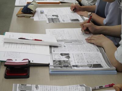 3か月後に予定している雄山中・大坪亮太教諭の授業研究で扱う教材「元さんと二通の手紙」の分析を行いました。
