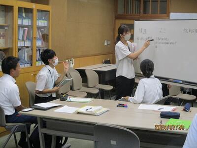 1学期の最終日となる7月24日午後、お隣の雄山中学校の校内研修会の一部におじゃましました。